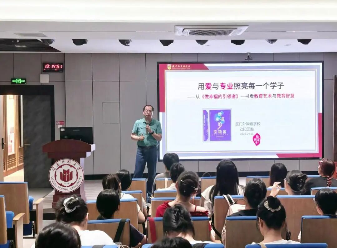 2026年04月01日时间:2026年3月21日下午3点地点:博西梯一主讲人:郭寒竹内容:题目:汉语国际教育专业的顶层设计提要:专业顶层设计取决于专业培养目标。闽师大汉语国际教育专业的培养目标是:致力于造就“精语言、通文化、善传播”的复合型应用人才。齐齐哈尔大学的概括是:“精汉语、强外语、通文化、达天下”的复合型人才。二者不谋而合,异曲同工。闽南师大校训:博学、明理、砺志、笃行。齐齐哈尔大学国际教育学院在校训“养正毓德、精存自生”...