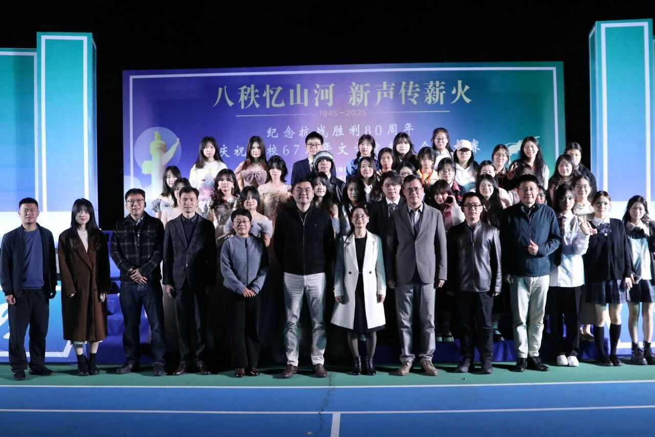 烽火铭浩峥,新声谱华章。恰逢中国人民抗日战争暨世界反法西斯战争胜利80周年,又喜迎我校建校67周年,为深入学习贯彻党的二十届四中全会精神,12月12日晚,由共青团闽南师范大学委员会、文学院主办,共青团闽南师范大学文学院委员会承办,国家语言文字推广基地(闽南师范大学)协办的“八秩忆山河,新声传薪火”2025级新生班级合诵大赛在圆山校区隆重举行。招就处就业科科长罗立满、商学院老师王学伍、国家语言文字推广基地(闽南师范大学)办公室主任肖模艳应邀担任评委,文学院党委书记林晓,院长陈练军,党委副书记沈晓杰,团委书记黄小乐,各年级辅导员出席活动,与同学们共同聆听青春之声,赓续红色基因,展望奋进新程。