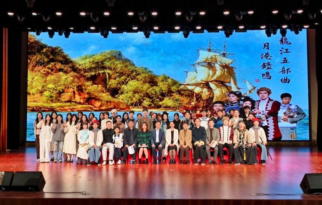 12月30日晚,由闽南师范大学文学院出品,汉语国际教育系与芝山剧社联合演绎的大型原创剧作《龙江五部曲:月港钟鸣》,在闽南文化艺术中心多功能厅隆重首演。闽南师范大学文学院党委书记林晓、副院长杨杏红,恒丽电子股份有限公司董事长邵跃明、总经理施巧玲,漳州竹初木偶艺术馆徐强,漳州作家协会副会长陈小玲,四季和歌文化投资创意总监王忠明等莅临现场,与师生观众共同观看这段跨越时空的月港往事。