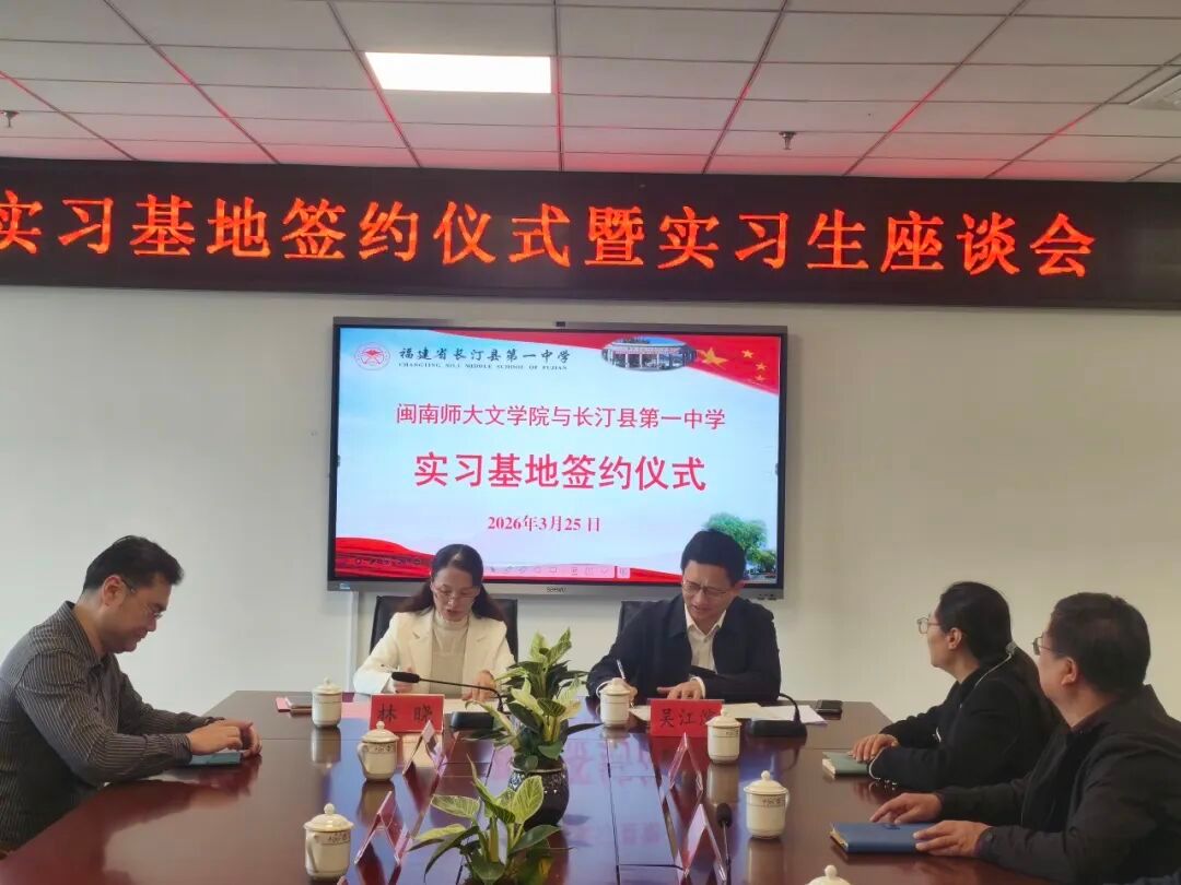 3月25日,我院党委书记林晓、党委副书记沈晓杰、副院长杨杏红等一行四人赴龙岩市长汀县第一中学签订教育实习基地合作协议,并与实习队学生开展座谈交流。长汀县政协副主席、长汀一中校长吴江滨,长汀一中分校校长戴燕祥,长汀一中副校长周飞南、刘成金出席签约仪式。