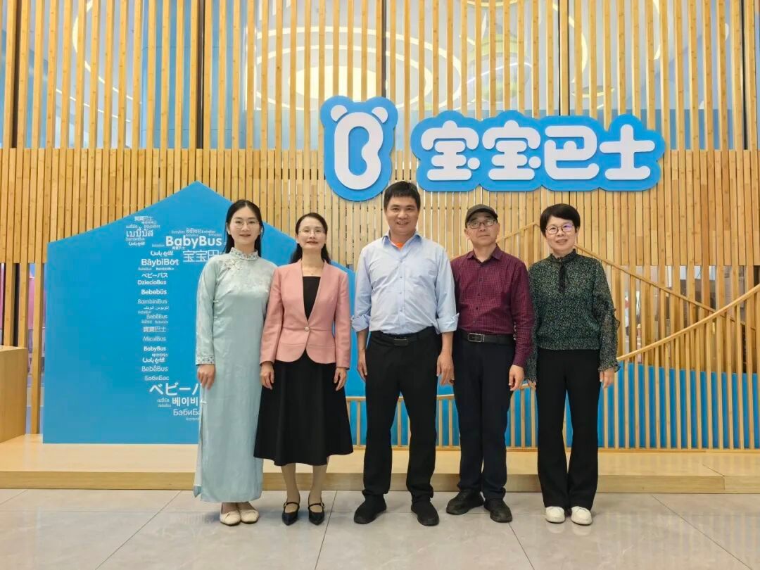 在宝宝巴士股份有限公司,人力资源部负责人邹敏华详细介绍了企业发展历程、生产经营现状及发展前景,并陪同参观了企业研发中心、创作中心与电商直播间。随后,学院一行与企业董事长唐光宇进行会谈,双方围绕企业招聘计划、岗位需求、学校人才培养模式及实习基地共建等事项深入交流。