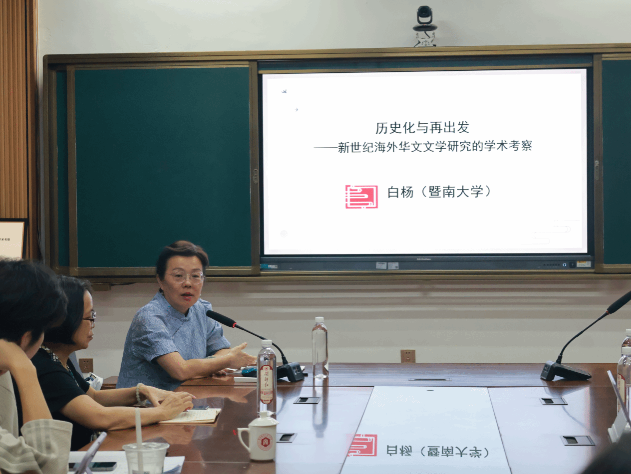 10月21日晚上,中国世界华文文学学会会长、暨南大学文学院博士生导师白杨教授,应邀在博东110开展题为“历史化与再出发:新世纪海外华文文学研究的学术考察”的学术讲座,该讲座系台港澳与海外华人文学系列讲座第5讲。本场讲座由文学院院长助理刘玉杰副教授主持,向忆秋教授参与讲座。数十名硕博研究生前来学习、交流。