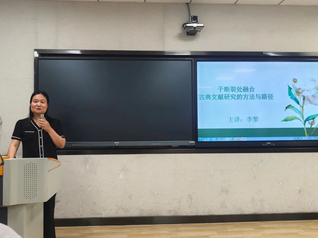 10月24日上午,贵州财经大学李黎教授应我院邀请,于博东107教室带来题为“于断裂处融合古典文献研究的方法与路径”的学术讲座。本次讲座由文学院郭薇老师主持,文学院部分师生到场聆听。