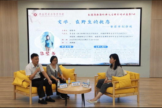 10月21日晚上,马来西亚作家黎紫书在博西梯一会议室,开展了题为“文学,在野生的状态——黎紫书创作谈”的学术访谈,该访谈系台港澳与海外华人文学系列讲座第7讲。本场访谈由中国世界华文文学学会副会长、浙江传媒学院文学院院长、二级教授、博士生导师朱文斌和福建省台港澳暨海外华文文学研究会副会长、闽南师范大学文学院向忆秋教授共同主持,全校师生积极参与,热情互动。