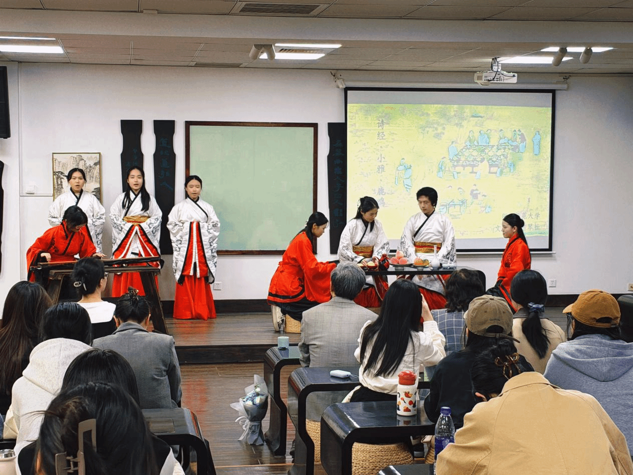 随后,闽南师范大学文学院泠音琴社成员带来了《鹿鸣》选段吟诵与《离骚》选段弹奏表演,清音雅韵,为这场学术活动增添了一份典雅的人文意境。