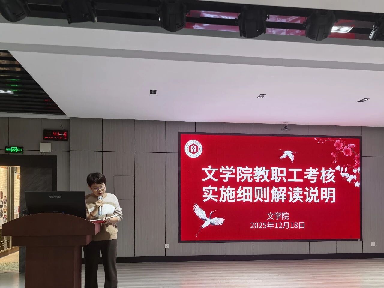 随后,全体教职员工对《闽南师范大学文学院教职工考核实施细则(试行)》进行审议,副院长杨杏红解读教学类聘期考核核心指标,明确相关评价标准。副院长周军针对科研类考核细则作出说明,明确不同岗位科研权重配置,鼓励教职工积极申报高级别科研项目、参与学术交流活动,规范科研成果认证流程,以科研创新助力学科发展。最后,全体教职工进行表决,一致通过《闽南师范大学文学院教职工考核实施细则(试行)》。