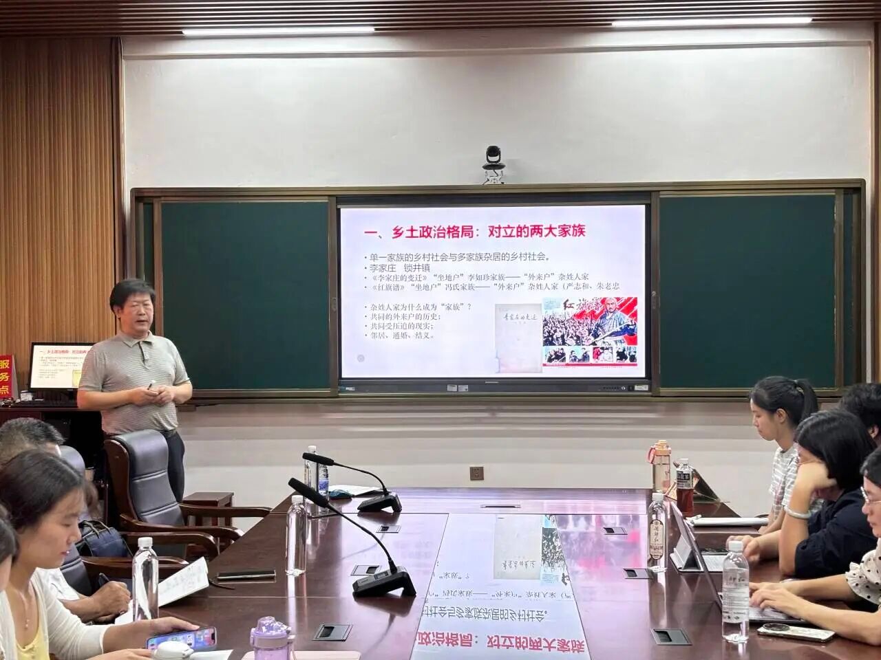 10月18日下午,安徽师范大学文学院教授、博士生导师方维保受邀在博东110为我院师生作了题为“ 旧中国的乡土政治、法律困境与‘革命’的发生—由《李家庄的变迁》《红旗谱》《浮躁》中的杂姓人家说起”的学术讲座。讲座由文学院胡明贵教授主持,郑少茹老师与近三十位博士、硕士研究生参加了本次讲座。